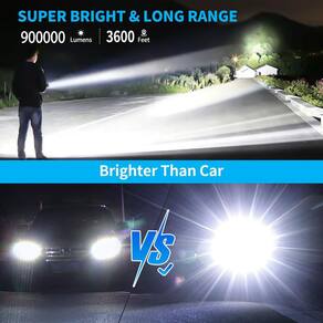 - LANTERNA MAIS BRILHANTE ATUALIZADA - A lanterna recarregável usa um chip LED XHP70 atualizado, que é 10 vezes mais brilhante do que as lanternas LED comuns. O brilho máximo é de até 900.000 lúmens, proporcionando um brilho deslumbrante. Seu alcance de iluminação é maior e mais distante, com uma distância máxima de iluminação de até 3600 pés, tornando-o tudo antes de você ficar claro e claro, protegendo você do escuro e do desconhecido. Imprescindível para viagens ao ar livre, acampar e fazer caminhadas.