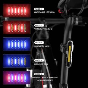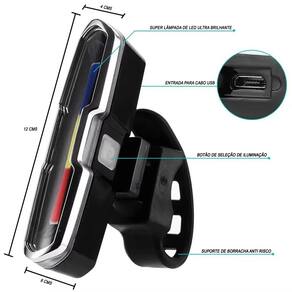 Lanterna de BiKe Gold Sports alto brilho possui 5 Modos de Funções com Cabo USB Recarregável A Prova de Água é um equipamento necessário para sua segurança seus leds são de ultima geração com um potência de alcance incrível. A Lanterna vem com suporte de borracha anti - risco e pode ser colocada em sua Bicicleta sua luz e vermelha, Branca ou Azul. Possui teste dos modos duração: no modo forte 4 horas, piscando 10 hora, alerta 12 horas e estroboscópica 8 horas. A lanterna possui anti impacto de até 1.5 metros de altura, sua iluminação chega a uma distância de 100 metros, e pode ser colocada na frente na trazeira de sua bike, no capacete, na mochila etc... 5 modos de iluminação 1- iluminação vermelha 2- iluminação vermelha piscando 3- iluminação azul 4- iluminação azul piscando 5- iluminação azul, branca e vermelha piscando Prova d água :Sim (não submergível) Método de carregamento: Carregamento USB Android, Tomada de computador, banco de energia, tomada doméstica Durabilidade do tempo em uso: 2 horas tempo de carregamento da bateria interna: 4 horas Materiais: ABS, PC e borracha Carregamento interface: através de um cabo USB Bateria: 500mAH Carregamento interface: através de um cabo USB Bateria: 500mAH Acessórios:01 cabo usb e anéis de borracha para adaptar no cano abaixo do Cilim Garantia: 01 mês somente contra defeito de fabricação Marca: Gold Sports