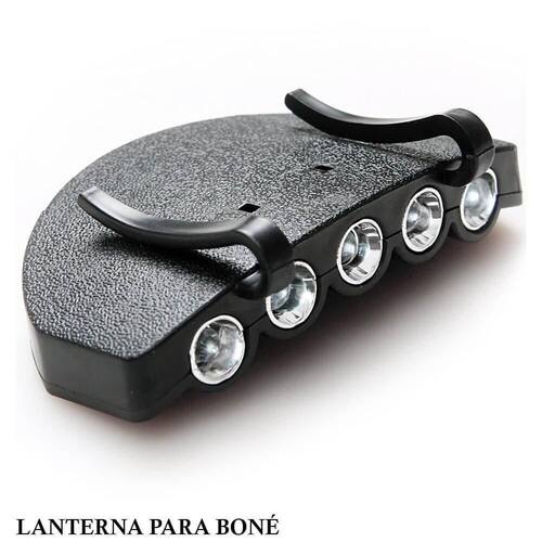 Lanterna De Bone Led Farol De Cabeca Iluminacao Trilha Pesca Clip On Essa lanterna de boné com 5 faróis de LED é um bom design para ciclismo, corrida, caminhadas (use o modo piscante), acampamento, pesca e a qualquer hora que você precisar de iluminação. Leve, compacto e projetado para suportar condições e uso extremos. Projetada para ficar fixa no boné dando mais praticidade deixando as mãos livres. CARACTERÍSTICAS: Interruptor ON/OFF Tipo: Luz de cabeça Cor: Preto ;Material: revestimento de plástico, luz LED 2 modos: 5 luzes LED, 5 flash LED Fonte de alimentação: 2 pilhas CR2032 (incluídas) Acessório leve, tempo de vida é de cerca de 100.000 horas Tamanho: 8,3 cm x 2,3 cm (aprox.)