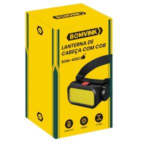 Produto: Lanterna de cabeça reccarregável COB 400 lúmens - BOM-4002 Marca: Bomvink Descrição: Introduzindo a ultra eficiente Lanterna de Cabeça 400 lúmens - BOM-4002 da Bomvink, é perfeita para amantes de aventuras ao ar livre, esta lanterna de cabeça foi projetada para iluminar qualquer atividade, seja em caminhadas noturnas, pescaria, caça ou até mesmo em reparos domésticos em locais com pouca luz. Este modelo é construído com um corpo robusto e tem nível de impermeabilidade IPX4, garantindo alta resistência a respingos de água de todas as direções atenção à entrada de carregamento . Além disso, a lanterna possui uma faixa elástica ajustável 400mm - 580mm , que assegura um ajuste confortável e seguro para diferentes tamanhos de cabeça. Com uma autonomia de 2-3 horas e uma bateria de 2000mAh, a BOM-4002 é ideal para longas jornadas. Portátil e leve, com medidas de 45mm x 110mm x 25mm, ela não é apenas prática mas também fácil de transportar, sem adicionar peso excessivo. Não fique no escuro, escolha a Lanterna de Cabeça 400 lúmens - BOM-4002 para uma visão clara e confiável. Uma luz brilhante no fim do seu caminho Com uma impressionante potência de 400 lúmens e tecnologia COB para luz branca e vermelha, a BOM-4002 não é apenas poderosa, mas também versátil. Ela oferece múltiplos modos de iluminação que se adaptam a qualquer situação: • Luz forte para uma visibilidade clara e distante. • Luz fraca para ambientes internos ou economia de energia. • Luz vermelha e flash vermelho para manter sua visão noturna intacta.Especificações: Faixa de tamanho da cabeça: 400 - 580 mmTempo de autonomia: 2-3hBrilho: 400LMDistância de iluminação: 3-50mCapacidade da bateria: 2000mAhLâmpada: Luz branca COB + luzver melha COB.Itens Inclusos: Cabo USB com conector tipo C. Marca: Não Informado