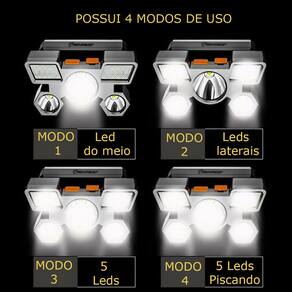 Lanterna De Cabeça Gold Sports Holofote Recarregável 4 Modelos de iluminação Bateria de Lítio A Prova de Água e ideal para vários esportes e atividades. A lanternas de cabeça é leve e ajustável até 90° e suas tiras elásticas a mantém firme É muito fácil de ser colocada e ajustada na sua cabeça, possui 5 desenho de leds diferentes e 4 modos de iluminação. A sua iluminação é de alto alcançe e seus leds são de cor branca Bateria longa duração - Alcance: 350-1000m Luz principal: 15-20h Lúmens: 100 lúmens (cada luz led) Prova d água :Sim (não submergível) Método de carregamento: Carregamento USB Android, Tomada de computador, banco de energia, tomada doméstica Durabilidade do tempo em uso: 2-6 horas tempo de carregamento da bateria interna: 2-4 horas Função: 1 luz acesa-4 luzes acesas-5 luzes acesas-5 luzes piscando Materiais: ABS, PC Poliester Carregamento interface: através de um cabo USB Bateria: bateria de lítio 1 Acessórios:01 micro Micro USB cabo e uma tira elástica ajustável de cabeça Marca:Gold Sports Garantia: 01 mês somente contra defeito de fabricação