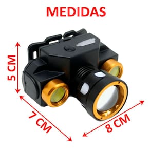 Lanterna De Cabeça Profissional Recarregável Dourado 3 LEDs -