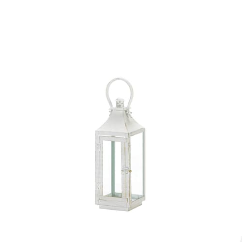 - A lanterna branca simples oferece uma silhueta limpa e um acabamento branco brilhante para uma atualização moderna do design tradicional da lanterna; a lanterna decorativa é feita com uma moldura de ferro e vidraças e é adequada para ambientes internos e externos