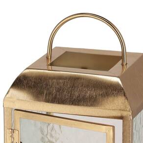 Lanterna Decorativa em Metal e Vidro Dourado
