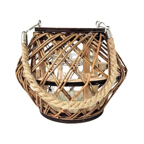 Lanterna Decorativa Lampião Castiçal Madeira Corda Rústico G