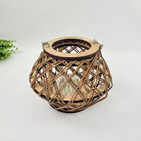 Lanterna Decorativa Lampião Castiçal Madeira Corda Rústico G Castiçal Decorativo de Madeira Vazada com Alça de Corda Inigual Decor Ilumine e decore seu ambiente com o Castiçal Decorativo de Madeira Vazada, um item que combina o charme rústico com um toque de elegância natural. Perfeito para criar uma atmosfera acolhedora e convidativa, destacando a beleza da luz de velas em qualquer espaço. Feito de madeira com acabamento vazado, este castiçal permite que a luz da vela escape suavemente, criando um efeito visual encantador e sombras delicadas. Ele possui uma alça de corda que facilita o transporte ou permite pendurá-lo, adicionando um detalhe rústico e prático à peça. No interior, há um copo de vidro removível, ideal para acomodar velas não inclusas e garantir a segurança, além de facilitar a limpeza e a troca da vela. Com 15 cm de altura ou 34 cm com a alça estendida e 19,5 cm de largura e profundidade, este castiçal tem um tamanho versátil para mesas de centro, prateleiras, varandas ou nichos. Pesando 390g, é leve e fácil de mover, mas com a robustez necessária para durar. É a escolha perfeita pra quem busca um elemento decorativo que remete à natureza e à simplicidade sofisticada, valorizando a iluminação intimista. Por Que Escolher o Castiçal Inigual Decor Design Rústico e Elegante: A combinação de madeira vazada e alça de corda cria um visual charmoso e natural. Ambiente Acolhedor: Ideal para criar uma iluminação suave e um clima intimista com velas. Versatilidade: Pode ser em mesas, pendurado ou como parte de composições decorativas. Praticidade: O copo de vidro removível facilita o uso e a manutenção, garantindo segurança. Material de Qualidade: Madeira resistente e vidro durável garantem longevidade à peça. Especificações do Produto: Altura Aprox.: 15,0 cm Altura Aprox. com alça : 34,0 cm Largura Aprox.: 19,5 cm Profundidade Aprox.: 19,5 cm Peso: 390 g Material: Madeira, Corda e Vidro Conteúdo da Embalagem: 1 Castiçal Decorativo Vela não inclusa Importante: Limpe delicadamente com um pano macio e seco. Evite o uso de produtos abrasivos ou quedas. Ao usar velas, nunca deixe o castiçal sem supervisão e posicione-o em superfícies seguras, longe de materiais inflamáveis. Observação: As imagens são ilustrativas. Os demais itens decorativos exibidos nas fotos não acompanham o produto.
