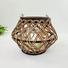 Lanterna Decorativa Lampião Castiçal Madeira Corda Rústico G Castiçal Decorativo de Madeira Vazada com Alça de Corda Inigual Decor Ilumine e decore seu ambiente com o Castiçal Decorativo de Madeira Vazada, um item que combina o charme rústico com um toque de elegância natural. Perfeito para criar uma atmosfera acolhedora e convidativa, destacando a beleza da luz de velas em qualquer espaço. Feito de madeira com acabamento vazado, este castiçal permite que a luz da vela escape suavemente, criando um efeito visual encantador e sombras delicadas. Ele possui uma alça de corda que facilita o transporte ou permite pendurá-lo, adicionando um detalhe rústico e prático à peça. No interior, há um copo de vidro removível, ideal para acomodar velas não inclusas e garantir a segurança, além de facilitar a limpeza e a troca da vela. Com 15 cm de altura ou 34 cm com a alça estendida e 19,5 cm de largura e profundidade, este castiçal tem um tamanho versátil para mesas de centro, prateleiras, varandas ou nichos. Pesando 390g, é leve e fácil de mover, mas com a robustez necessária para durar. É a escolha perfeita pra quem busca um elemento decorativo que remete à natureza e à simplicidade sofisticada, valorizando a iluminação intimista. Por Que Escolher o Castiçal Inigual Decor Design Rústico e Elegante: A combinação de madeira vazada e alça de corda cria um visual charmoso e natural. Ambiente Acolhedor: Ideal para criar uma iluminação suave e um clima intimista com velas. Versatilidade: Pode ser em mesas, pendurado ou como parte de composições decorativas. Praticidade: O copo de vidro removível facilita o uso e a manutenção, garantindo segurança. Material de Qualidade: Madeira resistente e vidro durável garantem longevidade à peça. Especificações do Produto: Altura Aprox.: 15,0 cm Altura Aprox. com alça : 34,0 cm Largura Aprox.: 19,5 cm Profundidade Aprox.: 19,5 cm Peso: 390 g Material: Madeira, Corda e Vidro Conteúdo da Embalagem: 1 Castiçal Decorativo Vela não inclusa Importante: Limpe delicadamente com um pano macio e seco. Evite o uso de produtos abrasivos ou quedas. Ao usar velas, nunca deixe o castiçal sem supervisão e posicione-o em superfícies seguras, longe de materiais inflamáveis. Observação: As imagens são ilustrativas. Os demais itens decorativos exibidos nas fotos não acompanham o produto.