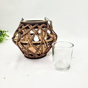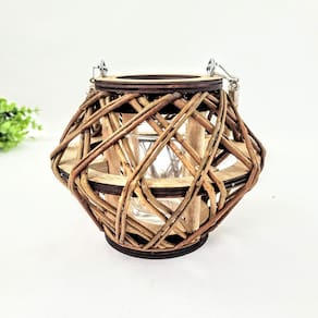 Lanterna Decorativa Lampião Castiçal Madeira Corda Rústico P Castiçal Decorativo de Madeira Vazada com Alça de Corda Inigual Decor Ilumine e decore seu ambiente com o Castiçal Decorativo de Madeira Vazada, um item que combina o charme rústico com um toque de elegância natural. Perfeito para criar uma atmosfera acolhedora e convidativa, destacando a beleza da luz de velas em qualquer espaço. Feito de madeira com acabamento vazado, este castiçal permite que a luz da vela escape suavemente, criando um efeito visual encantador e sombras delicadas. Ele possui uma alça de corda que facilita o transporte ou permite pendurá-lo, adicionando um detalhe rústico e prático à peça. No interior, há um copo de vidro removível, ideal para acomodar velas não inclusas e garantir a segurança, além de facilitar a limpeza e a troca da vela. Com 12,5 cm de altura ou 29 cm com a alça estendida e 16 cm de largura e profundidade, este castiçal tem um tamanho versátil para mesas de centro, prateleiras, varandas ou nichos. Pesando 265g, é leve e fácil de mover, mas com a robustez necessária para durar. É a escolha perfeita pra quem busca um elemento decorativo que remete à natureza e à simplicidade sofisticada, valorizando a iluminação intimista. Por Que Escolher o Castiçal Inigual Decor Design Rústico e Elegante: A combinação de madeira vazada e alça de corda cria um visual charmoso e natural. Ambiente Acolhedor: Ideal para criar uma iluminação suave e um clima intimista com velas. Versatilidade: Pode ser em mesas, pendurado ou como parte de composições decorativas. Praticidade: O copo de vidro removível facilita o uso e a manutenção, garantindo segurança. Material de Qualidade: Madeira resistente e vidro durável garantem longevidade à peça. Especificações do Produto: Altura Aprox.: 12,5 cm Altura Aprox. com alça : 29,0 cm Largura Aprox.: 16,0 cm Profundidade Aprox.: 16,0 cm Peso: 265 g Material: Madeira, Corda e Vidro Conteúdo da Embalagem: 1 Castiçal Decorativo Vela não inclusa Importante: Limpe delicadamente com um pano macio e seco. Evite o uso de produtos abrasivos ou quedas. Ao usar velas, nunca deixe o castiçal sem supervisão e posicione-o em superfícies seguras, longe de materiais inflamáveis. Observação: As imagens são ilustrativas. Os demais itens decorativos exibidos nas fotos não acompanham o produto.