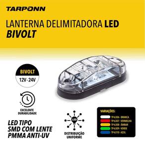 Procura por uma iluminação eficiente e durável A lanterna delimitadora led da tarponn é feita de um material de alta qualidade que oferece maior durabilidade, tamanho compacto e acabamento impecável. Além de ser resistente a vibrações e calor, possui grau de proteção ip 65 resistente a água.Características: bivolt Alto brilho Alta durabilidade Resistente a água Distribuição uniforme da iluminação Fácil de adaptar Baixo consumo de energiaAplicação: caminhão baú, trailer, barcos, baú, carretas e ônibus.Ficha técnica: cor: branca fria temperatura de cor: 6000k encaixe: universal tensão: 12 a 24v equivalência: 3w lente: pmma anti-uv tipo de led: smd linha: standart grau de proteção de água: ip65 fluxo luminoso: 5 lúmensConteúdo embalagem: 01 lanterna delimitadoraMega gt - especialista em acessórios automotivos e utilidades na mega gt, somos especialistas em acessórios automotivos e utilidades. Buscamos sempre oferecer a melhor opção com preço justo em todas as suas compras. Todos os produtos: envio em até 24 horas 3 meses de garantiaDúvidas frequentes: Possui garantia sim, os nossos produtos lanterna lateral possuem garantia de 3 meses. A sua satisfação é a nossa prioridade.Imagens meramente ilustrativas