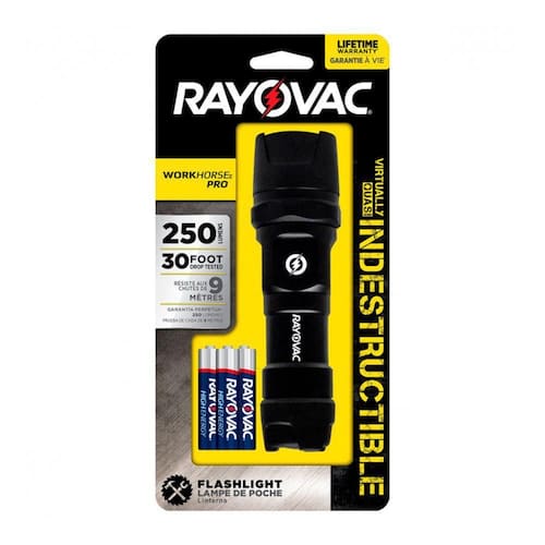 Lanterna Indestrutível Rayovac Pilhas Inclusas As Lanternas Profissionais Rayovac são resistentes, têm alto desempenho e durabilidade, além de garantia vitalícia contra defeitos de fabricação. Elas podem ser no estilo holofote, com iluminação de facho aberto, ou focal de longo alcance. É ideal entender a disponibilidade de energia elétrica por perto e o tempo de uso para escolher entre um modelo com pilhas ou recarregável. Encontre abaixo padrões que ajudam o consumidor fazer comparações e a escolha certa entre os modelos. As lanternas Rayovac são testadas de acordo com os padrões ANSI American National Standards Institute . Indestrutível pequena Lúmens quantidade de luz Normal: 120lm Econômico: 19lm Alcance Normal: 160m Econômico: 70m Fonte de Energia 3 pilhas AAA Autonomia Alto: 15 hs Baixo: 35 hs Resistência à água: Sim Marca: RAYOVAC Peso: 0,2 Kg Largura: 10 Cm Altura: 20 Cm Profundidade: 4 Cm Garantia: 3 meses Ean: 012800515578
