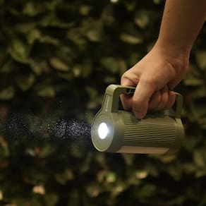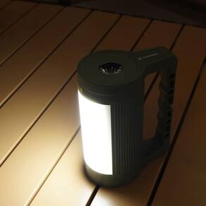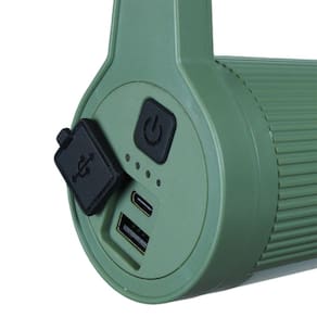 Distância de iluminação: 100 metros Potência de 300 a 1000 lúmens Funciona como Power Bank Recarregável via USB tipo C Peso: 258g Medidas: 9 x 9 x 13,1cm Material: Corpo em plástico ABS
