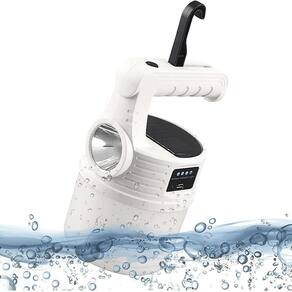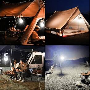 Características: Material: abs Cor das luzes: branco frio Alimentação: solar e usb Capacidade da bateria: 1200mah Potência da lanterna: 5w Potência do corpo: 10w Alcance máximo: 50m Led indicadores de bateria. 10 modos 5 modos como lanterna e 5 modos como luminária Gancho embutido Led potente Resistente a água Portátil