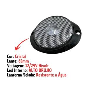 Lanterna lateral led carreta / caminhão / trailer / reboque - com suporte frontal cristal p - 65mm Marca: iva; Código: l3014cr; Especificações: Características: - bivolt 12/24v; - led interno alto brilho; - lanterna selada: resistente a água; - lente de 65mm; - cor: cristal; - fixação: frontal; - com suporte fixo; - tipo de alimentação: fios não é necessário chicote ; - tipo de luz: led; - watts: 10 w; - alcance de projeção: 10 m; - potência: 10 lm; Aplicação: - universal; - randon, , librelato, noma, facchini, etc; Item incluso: 1 lanterna lateral com suporte 65mm ------------------------ - a ampec autopeças não se responsabiliza pelo mau uso ou instalação indevida do produto, sempre recomendamos que a instalação seja feita por um especializado. - o produto é novo Sim, trabalhamos somente com produtos novos. -tem disponibilidade do produto Temos disponibilidade de todos nossos produtos enquanto durarem os estoques. - imagem ilustrativa utilizada para identificação e demonstração de produto. - as marcas e modelos citadas no anúncio, pertencem aos seus respectivos fabricantes, somente mencionadas como referências para o uso correto do produto, conforme artigo 31 da lei: 8078 de 11.09.1990 Não temos qualquer vínculo com estas empresas. Marca: Não Informado