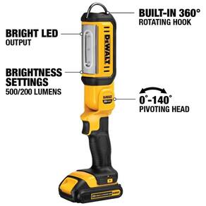 3 Áreas de trabalho iluminadas do local de trabalho escuro do LED Brilhante 2 Configurações de brilho de 500 lúmens e 250 lúmens de flexibilidade para uma iluminação ou tempo de operação. Cabeça pivotante de 140 graus de versatilidade para superfícies de trabalho de iluminação. A tensão inicial máxima da bateria medida sem carga de trabalho é de 20 volts Tensão nominal é 18. 3 LEDs brilhantes para áreas de trabalho escuras. Configurações de brilho 500 e 250 lúmens. Cabeça pivotante de 140 graus. Construído em telescopage e gancho giratório 360Degree Tampa de lente moldada Marca: Não Informado