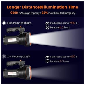UMA LUZ DE ALTO PODEROSO ONDE VOCÊ PRECISA MAIS. Luz LED ultra brilhante CREE XHP 70.2 de 35 Watts com 2 modos de brilho Alto 6.000 lúmens, Baixo 2500 lúmens. Com 6.000 lúmens, é significativamente mais brilhante que muitos refletores e lanternas de preço mais alto. Iluminação de alcance ultralongo até 800 metros. A torna uma lanterna de spot de longa distância. Além disso, é um poderoso holofote de acampamento e luz de aviso. UM FAROL RECARREGÁVEL COM SÉRIE DURABILIDADE MAIS DE 20 HORAS ALTO BRILHO. NÃO É PRECISO PAGAR PELAS BATERIAS. Este holofote atualizado é fabricado com uma bateria recarregável de íon de lítio de 4,3 volts 18650 de longa duração e grande capacidade 9600 mAh, com duração 50 mais longa do que qualquer outro holofote de última geração. IMPACTO RESISTENTE E IMPERMEÁVEL. Feito de um plugue impermeável de borracha e ABS resistente e resistente a impactos para proteger o sistema contra riscos, quedas, solavancos e respingos. Se você encontrar chuvas durante caminhadas, acampar, velejar ou caçar, não se preocupe é o IPX 6 à prova dágua IMPACTO RESISTENTE E IMPERMEÁVEL. Feito de um plugue impermeável de borracha e ABS resistente e resistente a impactos para proteger o sistema contra riscos, quedas, solavancos e respingos. Se você encontrar chuvas durante caminhadas, acampar, velejar ou caçar, não se preocupe é o IPX 6 à prova dágua Marca: Não Informado