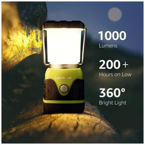 Conveniente de usar. Esta lanterna de acampamento portátil vem com dois ganchos, um na parte superior e outro na base, que podem pendurar a luz da barraca de cabeça para baixo para obter melhor luz ao iluminar uma grande área. Brilho à prova dágua e suficiente grade Grau de proteção IPX4, o que o torna bastante adequado para acampar, fazer caminhadas, pescar, passear com o cachorro, etc. E o brilho de 1000 lúmens e a iluminação de 360 graus fornecem o brilho suficiente. O uso de baterias de 1,5V 3 x D NÃO incluídas como fonte de alimentação permite que ele possa ser até 12 25 horas, que duram mais do que a maioria das lâmpadas de acampamento do . Economia de energia e adequado para falta de energia, uso de emergência, kit de sobrevivência para furacões e terremotos, etc. 4 modos de luz e regulável. Simplesmente curto. Pressione o interruptor da luz da barraca para ajustar entre 700lm branco frio e 300lm branco quente, 1000lm branco frio a 1000lm modo flash. Enquanto pressiona longamente, pode ajustar o brilho para atender às suas necessidades Marca: Não Informado