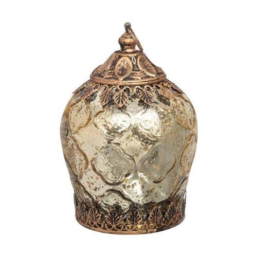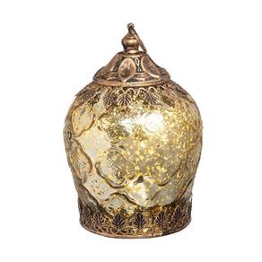 A Lanterna Fez tem 13 cm e é produzida em vidro, com acabamento mercurizado, led interno e alça. O led, quando acionado, cria uma iluminação suave na cor do vidro, criando um ponto de destaque de luz.