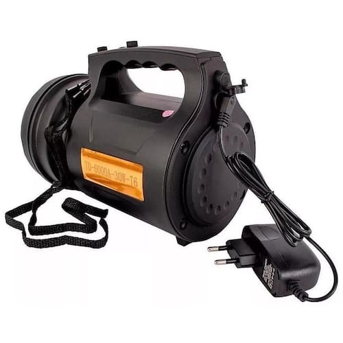 Descrição: Uma lanterna portátil, resistente e potente. É essencial em emergências, além disto, pode ser usada em seu trabalho, pescas, trilhas, montanhismo, camping, escalada, sobrevivência, e patrulha noturna. A Lanterna Holofote é compacta, com boa iluminação e sistema exclusivo de iluminação Para ambientes, como por exemplo, barracas de camping ou interior do carro. Feito em plástico resistente, tornando-a leve e fácil de transportar, com apenas 2 Kilos. Para seu funcionamento, a Lanterna Holofote não precisa de pilhas ou baterias externas, Ela tem bateria interna recarregável bivolt . Basta conectar o cabo e conectá-la na tomada. Características: Resistente Ideal para longas emergências Fácil transporte. 3 modos de funcionamento 1 modo: 50% da capacidade Econômica 2 modo: 100% da capacidade Normal 3 modo: S.O.S Possui alça para transporte Funciona com bateria recarregável interna Carregador de bateria bivolt Especificações Técnicas Potência: 30W com LED T6 Fluxo luminoso: cerca de 2800 Lúmens Modos de iluminação: Forte, baixo e modo strobo. Temperatura de funcionamento: -10°C/+ 45°C Umidade de funcionamento: 90% Carregador: entrada 110-220V saída AC DC 4V Tempo de carregamento: aprox. 4 Horas Tempo de utilização: 6 horas Alcance do foco: 80 metros Resistente a respingos d´água Dimensões Aprox. : Comprimento: 16cm / Diâmetro da Lente: 6,5cm Diâmetro da Frente: 7,5cm / Diâmetro da Traseira: 7cm / Diâmetro do Corpo: 7cm Peso Aprox. : 2 kilos Itens Inclusos: 1 Lanterna Led Holofote. 1 Carregador. 1 Alça para transporte. Ean: 7897571155375