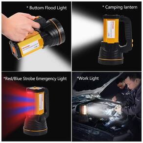 Lanterna Recarregável Brilhante. Mais Funções. Super brilhante lúmens altos lanterna de luz de busca por spot Lanterna lateral de luz de inundação separada Lanterna de luz de inundação lateral separada Recarregável grande bateria alimentada 10000 mah Saída USB para carregar o telefone lidar com o dispositivo portátil carregando alça de ombro pode montar no tripé ou suporte de bicicleta. Lanterna de luz de inundação do lado brilhante separada. Este holofote de lanterna LED também possui luz de inundação lateral extra brilhante, muito brilhante para lâmpada de emergência em casa, luz de trabalho, lanterna de acampamento. Seu modo de luz estroboscópica VERMELHO , AZUL também pode ser como SOS, luz de aviso. Recarregável super brilhante de busca por luz de spot de feixe longo CREE XHP 70.2 recarregável. Refletor de fonte de luz LED de alta potência CREE XHP 70.2 fornece iluminação ultra longa de 800 m, interruptor de modo Brighness High , Low, holofote portátil para barco, marinha, caça, jardim, cachorro ambulante etc. Bateria de lítio 18650 recarregável grande de alta potência incluída. 4 peças 10000 mah e saída USB como banco de potência para carregar o telefone. Proteção múltipla inteligente proteção contra sobrecarga , descarga excessiva pode torná lo ao carregar esta luz de pesquisa portátil. Lanterna de longa duração, alta duração de luz por 10 horas e pouca luz por até 30 horas. Portátil leve apenas 670gr. Maneiras de transporte múltiplo e lanterna à prova dágua IPX6 à prova dágua. Alça superior para facilitar a tomada e desligar. A tocha leve de pesquisa também inclui uma alça de ombro para facilitar o transporte e seu fundo possui um orifício para montagem em tripé ou suporte de bicicleta para liberar as mãos o tripé ou o suporte de bicicleta não estão incluídos no pacote, lanterna IPX6 à prova dágua para barco, marinha, caça, lanterna de acampamento ao ar livre, pesca, reparação de automóveis, pesquisa etc Marca: Não Informado