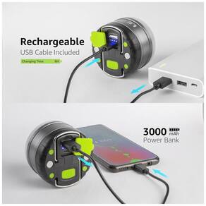 3 modos de iluminação. Esta lanterna de acampamento é fornecida com brilho total 280 lm, meio brilho 140 lm e modo SOS 260 lm, que pode durar, respectivamente, de 5 a 11 horas. Uma linha de luz indicadora azul mostra o nível da bateria para que você possa carregá lo em tempo hábil. 3000mAh Bateria de polímero recarregável embutida de 3000mAh cabo USB incluído, com uma porta de carregamento USB de 5V 1A na lanterna. Suporte adaptador de carregador de 5V DC não incluído. Compacto e portátil. Pequeno, mas brilhante o suficiente, com design compacto e peso de 180gr, a lâmpada de acampamento pode ser colocada em sua bolsa ou mochila sem ocupar muito espaço. Ímãs e ganchos. Existem dois ímãs na base para que você possa colar esta luz de barraca em uma superfície de metal, como uma bicicleta, carro ou um poste. Também pode ser pendurado usando duas presilhas de metal na base Marca: Não Informado