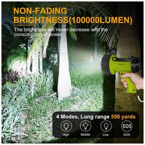 EXTRA BRILHANTE HEAVY DUTY FLASHLIGHT Seu brilho é várias vezes maior do que o modelo pequeno. Este refletor LED extra brilhante lança um feixe de 100.000 lúmens altos para incríveis 500 Metros. Os LEDs possuem uma vida útil estendida de 50.000 horas. Possui 4 configurações adaptáveis Alto , Médio Baixo , SOS pressione e segure por 3 segundos. IMPERMEÁVEL E FLUTUANTE, RESISTENTE A IMPACTOS Este spot light portátil externo é IP67 à prova dágua e submersível até 3 pés, e até flutua de volta à superfície se cair na água. A carcaça de ABS de alta resistência com capa protetora de silicone garante durabilidade máxima, o corpo robusto resiste a quedas de até . ILUMINAÇÃO DE LONGO TEMPO E BANCO DE POTÊNCIA Baterias embutidas de 10000 mAh, a tecnologia de bateria proprietária da YIERBLUE oferece até 9 horas de iluminação em configurações mais baixas, 3 horas de iluminação em configurações mais altas. Uma porta de saída embutida na luz do ponto pode ser usada como um banco de energia para carregar seus dispositivos em caso de emergência. CARREGAMENTO RÁPIDO DE QUATRO HORAS Com a avançada tecnologia de carregamento USB C, recarregue em apenas 4 horas. Compatível com qualquer porta de carregamento USB, você pode carregar este holofote recarregável em casa ou no carro. adaptador de carregamento não está incluído. MAIS FUNÇÕES Suporte ajustável para iluminação mãos livres, como uma luz de trabalho e filtro vermelho removível para iluminação de caça. Este holofote é uma ferramenta de iluminação perfeita para trabalhar, acampar, passear de barco, caçar, etc Marca: Não Informado