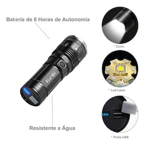 Destaques do Produto: - Potência de 2000 lumens: iluminação forte e ampla para uso em locais com pouca luz. - Zoom ajustável: foco regulável de x1 até x2000, adaptando-se às diferentes distâncias. - Modos de luz: escolha entre luz forte, luz média ou luz suave conforme a necessidade. - Bateria recarregável: bateria interna de 8000mAh com autonomia de até 6 horas. - Recarga prática: compatível com cabos USB e USB Type-C. - Design leve e compacto: estrutura em alumínio resistente, medindo 18,5cm x 5,5cm e pesando 348g.