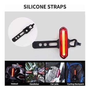 Feita com materiais plásticos de alta qualidade, esta lanterna traseira LED é resistente a chuva e recarregável via USB.