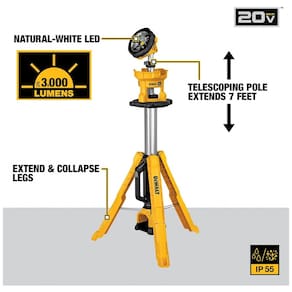 A luz de trabalho portátil LED branca natural fornece visibilidade de cores precisa, longa vida útil e permanece fria ao toque Três configurações de brilho da luz de trabalho DEWALT são projetadas para personalizar a iluminação do espaço de trabalho O poste telescópico da luz de trabalho recarregável estende a cabeça da luz para para reduzir sombras e brilho A cobertura resistente protege a cabeça da luz e resiste às condições do local de trabalho Mais de 11 horas de tempo de execução Classificação IP54 para resistência a intempéries e poeira Marca: Não Informado