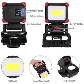 O botão ON, OFF permite alternar facilmente entre os 3 modos de luz. A luz de trabalho led brilhante é suficiente para lidar com a escuridão em sua vida. Luz de inundação com alça e clipe A alça de transporte e o design do clipe permitem que você aponte a luz diretamente para a área de trabalho, independentemente do local de trabalho, escritório ou qualquer outro lugar, pode prender em qualquer posição, solte as mãos. É leve e compacto pequeno o suficiente para segurar a luz como uma luz portátil. Base magnética rotativa de 270 A cabeça da luz de trabalho pode girar 270 para a esquerda e para a direita, e a base pode girar para cima e para baixo 180. Poderosa base magnética pode ser anexada à superfície de metal em segundos, liberando suas mãos. A cabeça rotativa da lâmpada e a poderosa base magnética podem ajudá lo a ver amplos ângulos de visão em várias direções. Carregador recarregável e portátil Esta luz de trabalho é recarregável, economizando o custo de substituição da bateria. A porta de saída USB pode carregar seu celular. Indicador de bateria Há um indicador de energia, que mostra a bateria restante, 25, 50, 75 e 100. Quando o indicador de carregamento piscar, carregue a luz em breve Marca: Não Informado