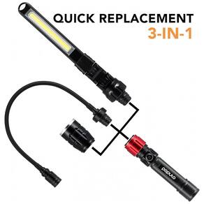 3 EM 1 O kit de luzes de trabalho LED POPULO inclui uma lanterna, uma luz dobrável de barra fina e uma luz de eixo flexível, cada cabeça pode ser trocada rapidamente. Todas as três cabeças suportam 2 modos de brilho, alto e baixo Lanterna recarregável USB O POPULO fornece uma lanterna recarregável e substituível de 3.7V 1800mAh bateria de íon de lítio de alto lúmens, um cabo USB para carregar o dispositivo, a luz pode durar até 4 horas alta , 16 horas baixa Lanterna magnética Um forte ímã na cauda da lanterna permite que você libere suas mãos para outras coisas. A luz de eixo flexível com gooseneck flexível e base magnética. Pode absorver ferro nos cantos, penetrar profundamente em um pequeno espaço escuro. A rotação livre fornece iluminação multi ângulo Foco ajustável e rotativo A lanterna Spotlight pode ajudá lo a encontrar gatos, cães e outros itens perdidos com mais facilidade. A luz dobrável de barra fina de trabalho LED pode girar 360 horizontalmente, fornece iluminação multi ângulo e luzes de emergência para falha de energia doméstica. Resistente à água e prático Possui uma classificação à prova dágua IPX4, adequada para uso na chuva, neve ou situações de emergência. Funciona perfeitamente para reparação de automóveis, iluminação doméstica, camping, caminhadas, churrasco, quedas de energia e doação de um pacote, também pode ser um presente para um amigo ou familiares. Um belo presente para a família e amigos Marca: Não Informado