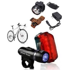 Kit indispensável de acessórios para sinalizar e proteger o ciclista na pista com pouca luz Com esse kit você Ilumina sua bike e pedala com tranquilidade e segurança. Pode também ser fixado na mochila ou jaqueta para outras atividades. O Kit é composto por farol dianteiro com 5 LEDs e 2 modos de luz e farol traseiro com 5 LEDs e 7 modos de luz. Alimentação: 6 Pilhas Aaa não inclusas . Dimensões Farol dianteiro: 10,3 x 6,1 x 3,3 cm Dimensões Farol traseiro: 6,8 x 3,9 x 4,9 cm Descrição: - Sinalizador Para Bicicleta Dianteiro e Traseiro - Luz Super Brilhante - Confeccionado com a melhor matéria-prima - Alta resistência e máxima durabilidade - Instalação fácil e rápida Imagens Ilustrativas Lanterna Cabeça Com Bateria Recarregável + Lanterna Luz Capacete Ciclismo Lanterna de cabeça com excelente custo benefício e ideal para quem procura por uma lanterna de cabeça leve, para uso em Ciclismo, trabalho, pesca, camping. Equipada com LED que é super econômico e consume pouca bateria. Excelente modelo de lanterna para uso na cabeça e também para uso na mão. Consome apenas 15% de uma lâmpada comum e tem alta vida util. Lanterna extremamente leve e confortável para uso, podendo ser Utilizado por horas seguidamente durante a atividade. Possui tiras elásticas nas laterais e parte superior da cabeça, oferendo total segurança. Para seu funcionamento, acompanha carregador bivolt 110v-220v . Características - Ajuste da direção do foco - Compacta - Leve e prática - Carregador bivolt 110v - 220v - Bateria recarregável Dimensões Aprox. : Comprimento: 6,5cm x 7,5cm Diâmetro da Lente: 3,9cm Diâmetro da Frente: 5,3cm Conteúdo da Embalagem 01 Lanterna de Cabeça 01 Suporte Elástico Ajustável para Cabeça 01 Carregador bivolt 110v -220v Imagens Ilustrativas