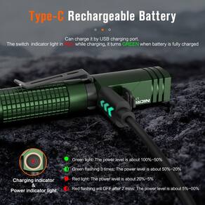 - ?Bateria recarregável tipo C? Você pode carregá-la pela porta de carregamento USB TypeC. A luz indicadora do interruptor fica vermelha durante o carregamento, fica verde quando a bateria está totalmente carregada. Também pode funcionar com pilha alcalina AAA