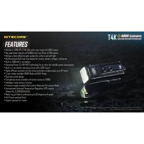 Performance Quadricore incrível: utiliza 4 LEDs CREE XP-L2 V6 e lentes reflexivas para iluminação uniforme e nítida, possui iluminação máxima de 4000 lúmens e alcance de 209 metros com acionamento instantâneo do modo Turbo (ideal para defesa pessoal).