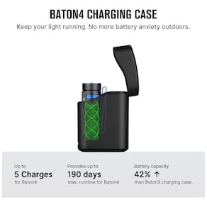 A lanterna OLIGHT Baton4 possui uma potência máxima de 1.300 lumens e alcance de luz de 170 metros. Com um ímã embutido e um clipe resistente de dois sentidos que permite fixá-la em superfícies metálicas ou prender ao cinto. Possui alça de segurança no estojo de carregamento para evitar quedas acidentais. Este poderoso estojo de carregamento oferece até 190 dias de tempo de execução e é totalmente compatível com Baton3, além de permitir o armazenamento e carregamento dos modelos S1R II, Perun Mini e Perun 2 Mini. Com uma porta USBC universal, pode ser facilmente carregada ou usada para carregar seu dispositivo móvel. A lanterna portátil possui um indicador microperfurado que mostra a intensidade da luz e a vida útil da bateria. Botão de exibição digital no estojo para indicação precisa do nível da bateria e ajuste de brilho. Com 6 modos de luz, você pode escolher entre Modo1 1300-300 lumens, Modo2 600-60 lumens, Modo3 60 lumens, Modo4 12 lumens, Modo5 0,5 lumens ou o estrobo a 13Hz, 1300 lumens, conforme sua preferência.