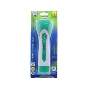 Lanterna recarregável bivolt 60hz 9 leds super econômica contém: 1 lanterna recarregável 9 leds a cor será enviada conforme disponibilidade em nosso estoque, podendo variar entre as cores: amarela, azul , laranja e verde. - dimensões da peça : ø6 x 19,5 cm. - marca: western. - material: abs, cobre e ps. Super econômica; não utiliza pilhas; maior autonomia; refletores especiais; com leds brilho e durabilidade ; lanterna recarregável rede elétrica ; bivolt 127v / 220v ; plugue de acordo com o padrão brasileiro; com refletores especiais que proporcionam melhor iluminação; bateria recarregável de cinza ácido, 4v selada, de longa duração; autonomia: aproximadamente 4 horas após carga completa. - capacidade: 400 mah;