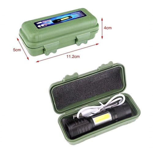 Cor da lanterna: preta Acompanha uma caixinha de plástico verde + cabo USB para carregar.