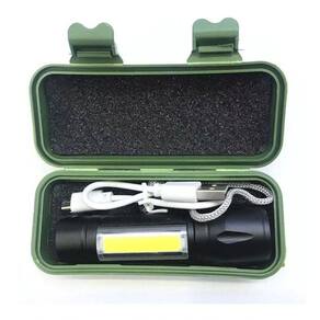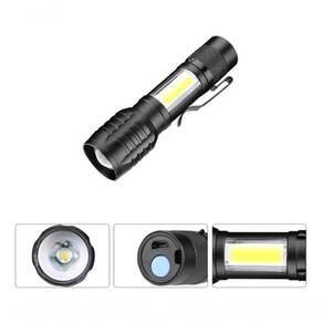 Projeto de vida da bateria: vida útil da bateria de longa duração Contas da lâmpada do produto: Contas da lâmpada XPE + COB Modo de brilho: luz forte do lado piscando Vida útil da lâmpada: 100000h + Desempenho à prova d'água: contas da lâmpada à prova de chuva fortes Brilho: 360LM Tempo de carregamento: carregamento rápido Faixa efetiva: 200-300 metros Zoom: sim Design do interruptor: interruptor de borracha Bateria: bateria de lítio embutida Material do produto: material de liga de alumínio