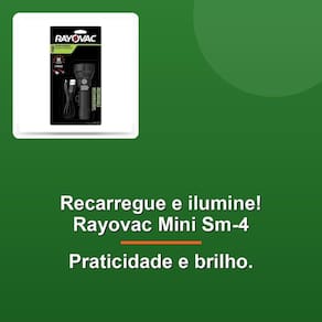 A Lanterna Recarregável Rayovac Ray Mini Sm-4 é indicada para quem precisa de iluminação confiável em diferentes situações. Compacta e recarregável, oferece praticidade no uso diário e em imprevistos. Seu design ergonômico facilita o manuseio e o transporte, contribuindo para mais conforto durante o uso prolongado. É uma opção versátil para acampamentos, uso doméstico e situações de emergência. A tradição da marca Rayovac reforça a durabilidade e a qualidade do produto.