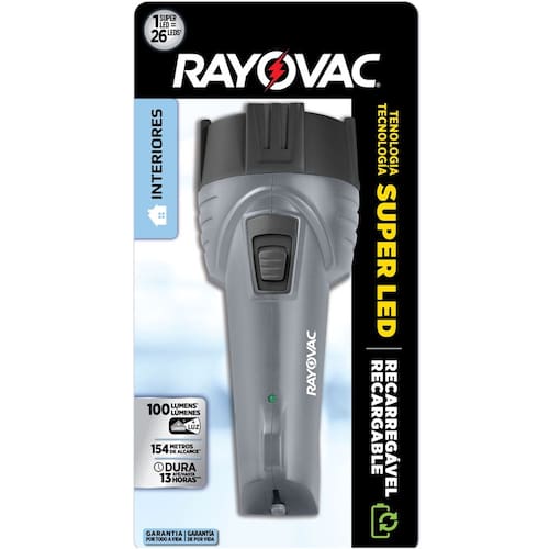 Perfeita para ter sempre à mão, a SUPER LED Recarregável Rayovac contém um único LED de alta performance que garante maior alcance, mais luz e longa duração comparadas aos LEDs convencionais. Modelo Super LED BIG Perfeita para ter sempre à mão, a SUPER LED Recarregável Rayovac contém um único LED de alta performance que garante maior alcance, mais luz e longa duração comparadas aos LEDs convencionais. 1 SUPER LED = 26 LEDS Recarregável Bivolt 110V/220V 154 m de alcance Duração de até 13 horas Ideal para interiores Ean: 783094020917