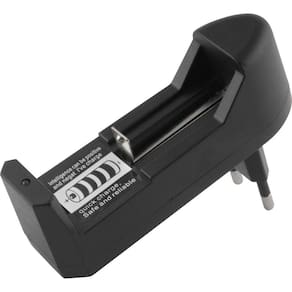 1 Lanterna, acompanha: 1 carregador bivolt, 1 bateria e um adaptador para 3 pilhas