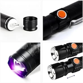 Lanterna de Luz Negra USB Recarregável Alta Intensidade e EconomiaDescubra a inovação em iluminação com a nossa Lanterna de Luz Negra USB Recarregável, projetada para oferecer eficiência, versatilidade e durabilidade. Ideal para uma ampla gama de aplicações, essa lanterna é a escolha perfeita para quem busca qualidade e praticidade.Características Principais :- Luz Negra de Alta Intensidade : Proporciona uma iluminação eficaz para diversas situações, incluindo testes de documentos e detecção de materiais fluorescentes.- Carregamento via USB : A lanterna é recarregada de forma prática e econômica, eliminando a necessidade de baterias descartáveis.- Resistente e Durável : Fabricada em liga de magnésio, a lanterna é resistente a água, indeformável e anticorrosiva, garantindo uma longa vida útil.- Disponível em três modos de luz : alta intensidade, baixa intensidade e strobe (pisca), para atender a diferentes necessidades de iluminação.- Ajuste de Zoom : Permite ajustar o foco da luz negra, de aberto a fechado, para maior precisão e versatilidade.Aplicações Recomendadas:- Testar Dinheiro e Documentos : Ideal para verificar a autenticidade de notas e documentos.- Visualizador de Tinta Invisível : Eficaz para revelar marcas e anotações invisíveis a olho nu.- Perícias e Vazamentos : Utilizada em investigações e detecção de vazamentos em superfícies.- Caça a Escorpiões : Os escorpiões reagem à luz negra, facilitando a sua localização.- Esmaltes e Fluorescentes : Detecta alterações em esmaltes e materiais fluorescentes.- Eventos e Festas : Perfeita para identificação e decoração em eventos especiais.- Uso Comercial : Ideal para supermercados, lojas e shoppings.Informações Técnicas:- Modos de Operação : Alta luz, baixa luz e strobe (pisca).- Tipo de LED : Cree T6.- Bateria : recarregável via USB.- Input : 5V.- Tempo de Carregamento : Aproximadamente 4 a 6 horas.- Aviso de Bateria Fraca : Quando a luz ficar fraca, a bateria está acabando. Pare de usar e carregue imediatamente.- Cuidado com Carregadores Turbo : Evite carregadores que ultrapassam 5V para não comprometer o desempenho da lanterna.- Uso e Manutenção : Não utilize por períodos prolongados para preservar a vida útil da bateria.Aproveite a tecnologia de ponta e a praticidade com a nossa Lanterna de Luz Negra USB Recarregável. Adquira a sua e experimente a diferença na qualidade de iluminação!