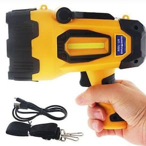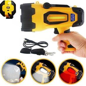 Material do Corpo: ABS Resistente a água Modo de Mudança: 3 modos Forte, Econômico e Strobo Fonte de Luz: Lâmpadas LED + Cob Foco Fixo Bateria: Interna Recarregável Carregamento: Via Cabo USB Lúmens:8000 Distância de Iluminação:200-500 m Cor: Amarelo: Material: ABS LED: T6 + COB: Modo: Alto / Baixo / Estroboscópio Modo Cob: Alto / Baixo / SOS Lanternas de alta potência: Switch: Middle Com alça: Carregamento por USB Luzes de trabalho: Luzes de acampamento