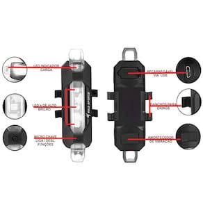 Lanterna traseira de BiKe Gold Sports Led Clear Vision 4 Modos de Funções com Cabo USB Recarregável A Prova de Água é um equipamento necessário para sua segurança seus leds são de ultima geração com um potência de alcance iLanterna Sinalizadora de BiKe Gold Sports Led Clear Branca 4 Modos Funções Cabo USB Recarregávelncrível. A Lanterna vem com dois anéis de borracha para ser cololada abaixo do Cilim da sua Bicicleta sua luz é Branca muitas pessoas colocom no guidão. Possui teste dos modos sem retirar da embalagem pressione o botão preto durante 3 segundos para ligar depois aperte rapidamente para ver os modos funcionando e para desligar mantenha o botão pressionado 3 segundos para desligar.