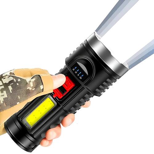 LED de Alto Brilho: Oferece uma iluminação potente e clara, ideal para diversas necessidades, desde encontrar objetos no escuro até iluminar um caminho.