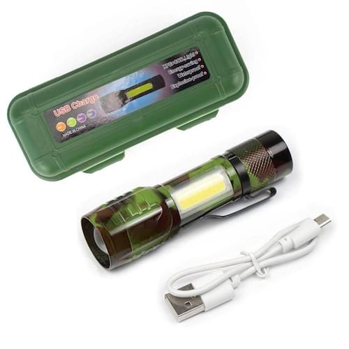 Lanterna Tatica Led Sabre Recarregavel Zoom Mesa 3 Em 1 Sos Trilha Usb Potente Mini Bolso Militar