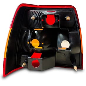 especificações técnicas: carcaça de plástico; lente vermelha; pisca ambar; ré cristal; não acompanha lâmpadas; não acompanha soquete;