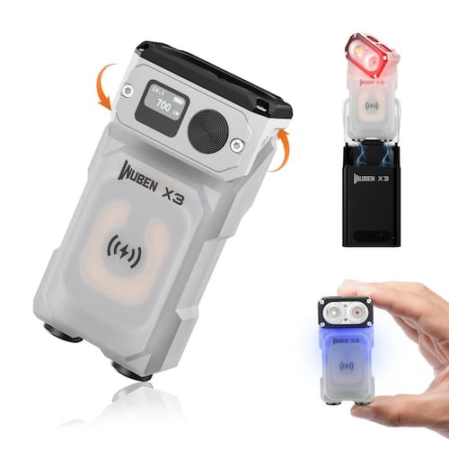 - Caixa de carregamento conveniente tipo C e display digital: esta versão de ponta das pequenas lanternas LED WUBEN X3 vem com uma caixa de carregamento de 3000 mAh, reabastece a energia durante o descanso, minimizando os problemas de carregamento frequentes. O visor digital inteligente de alta tecnologia solicita que você esteja mais ciente da potência restante da lanterna de bolso edc e do nível de lúmen, permitindo que você use a lanterna edc do chaveiro de uma maneira mais científica.