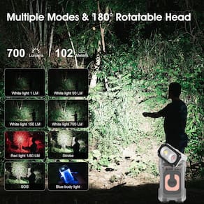 - Lanterna em miniatura estilo mecânico de 700 lúmens: abrace a inovação com nossa lanterna WUBEN com um design mecânico elegante e várias funções. Feita de materiais ultraleves e resistentes, oferece transporte diário sem esforço. A cabeça giratória de 180 graus permite que você ajuste a direção da luz para vários cenários, combinando praticidade com estética em um design compacto.