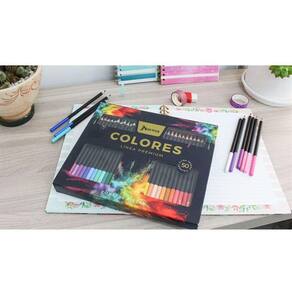 Embalagem com 50 cores Ponta 4mm Cores intensas Não quebra ao apontar
