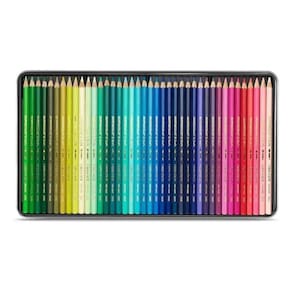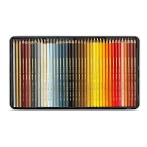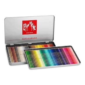 Lápis Aquarela Caran Dache 80 Cores Supracolor - Estojo Lata Linha Supracolor. Em estojo de metal, com 2 bandejas internas de 40 lápis cada. Produto da Suíça. Madeira Premium de cedro certificada FSC Corpo hexagonal e encapsulado Ligação solúvel em água, suave e inquebrável Diâmetro 3,8 mm para linhas limpas e precisas Excelente resistência à luz Alta concentração de pigmentos Utilização: Aquarela, desenho de lavagem, incubação, sobreposição de cores diferentes, sombreamento, mistura ilimitada Técnicas mistas combinadas com lápis permanentes PABLO, pastilhas de óleo de cera NEOCOLOR e guache Ideal para desenhos em grande escala com grandes áreas de cor Ean: 7610186043802